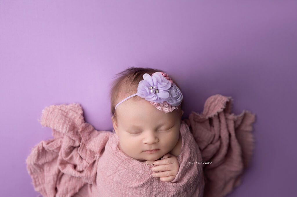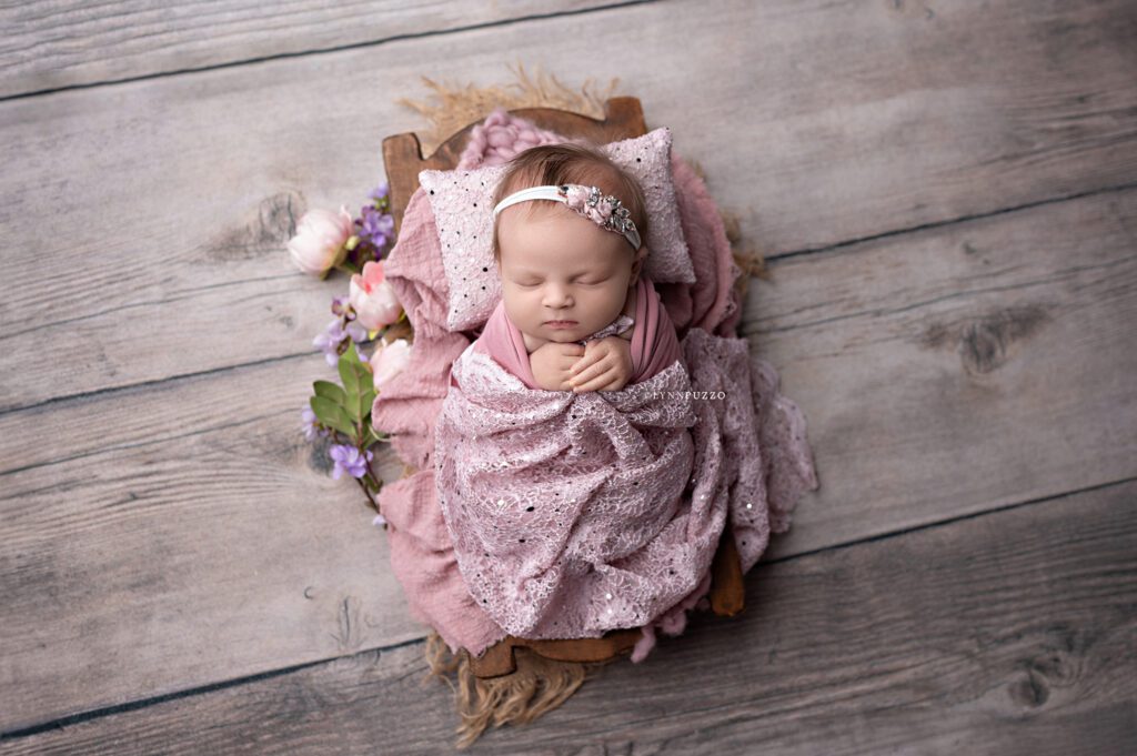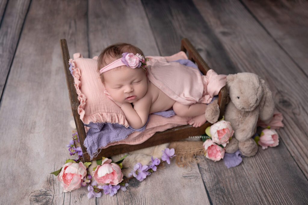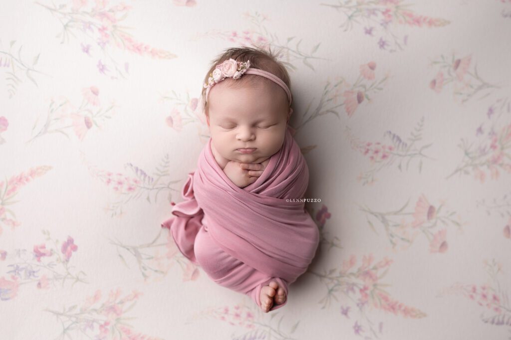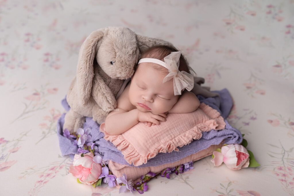 There is something incredibly special about photographing a newborn just as they’re beginning to stretch, yawn, and show tiny glimpses of their personality – and sweet Emilia’s soft floral newborn session was exactly that kind of magic.
